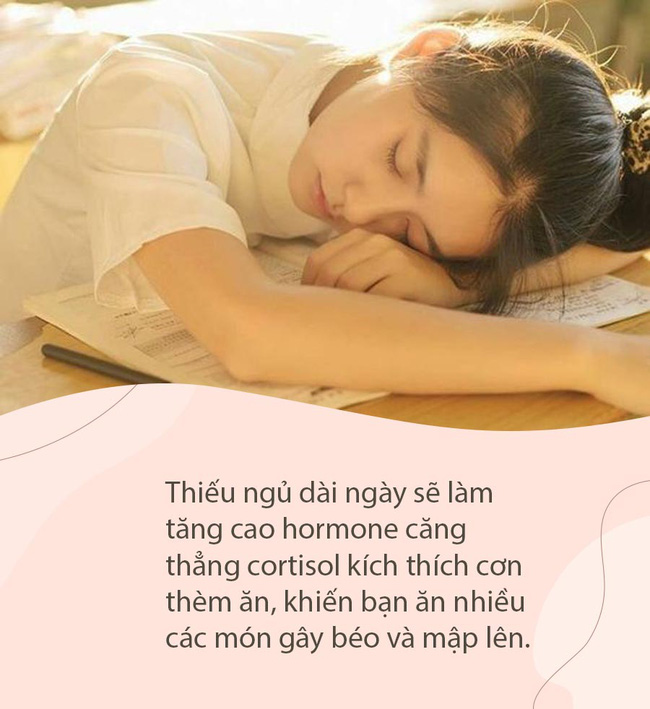 Trong nhịp sống bận rộn như bây giờ thì thức khuya ắt là chuyện không hiếm, sáng dậy thì thiếu ngủ và mất tỉnh táo. Các chuyên gia cho biết, thiếu ngủ sẽ làm tăng cao hormone căng thẳng cortisol kích thích cơn thèm ăn, nhất là các thực phẩm có đường. Chính vì vậy, thói quen thiếu ngủ có thể làm bạn béo phì và tích tụ một lượng mỡ đáng kể.
