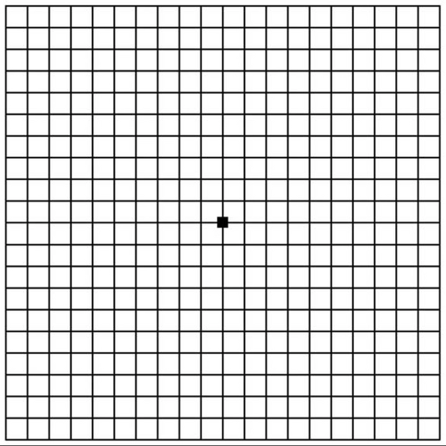 Thử nghiệm này có tên là Amsler, giúp xác định những dấu hiệu sớm của bệnh thoái hóa điểm vàng. Khi bị thoái hóa điểm vàng, thị giác sẽ suy giảm, thế giới xung quanh trở nên mờ nhạt. Thoái hóa điểm vàng thường xuất hiện ở người trên 50 tuổi và tiến triển rất nhanh, có thể dẫn đến mù lòa vĩnh viễn.