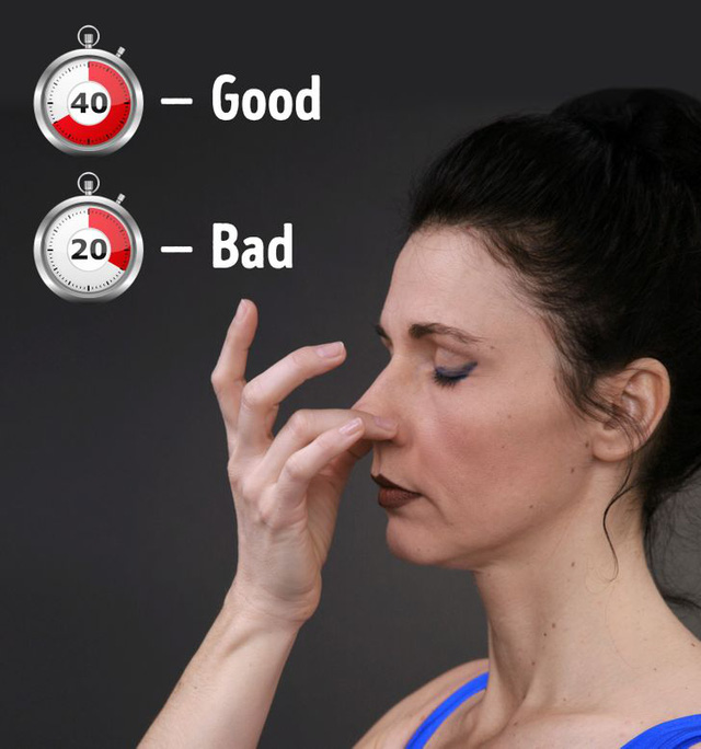 Để thực hiện bài kiểm tra này, hãy ngồi xuống và hít thở sâu. Thở ra, hít sâu và nín thở một lúc. Bạn nên dùng tay giữ mũi. Sử dụng đồng hồ đếm thời gian để theo dõi thời gian bạn nín thở. Một người khỏe mạnh là thời gian đo được không được thấp hơn 40 giây.