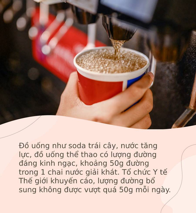 Mọi người đều biết rằng, đồ uống như nước ngọt có ga, soda trái cây, nước tăng lực, đồ uống thể thao có lượng đường đáng kinh ngạc, khoảng 50g đường trong 1 chai nước giải khát. Tổ chức Y tế Thế giới khuyến cáo, lượng đường bổ sung không được vượt quá 50g mỗi ngày.