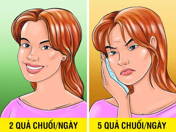 Ăn quá nhiều chuối có thể gây sâu răng. Cũng giống như đường, loại trái cây này có thể tạo ra vi khuẩn gây hại cho răng, làm tổn thương men răng của bạn. Nhưng tin tốt là lượng đường trong chuối ít cô đặc hơn. Bạn cũng có thể bị đau đầu vì chuối chín chứa nhiều tyramine có thể là tác nhân gây ra chứng đau nửa đầu. Ăn 2 quả chuối mỗi ngày là một lượng tốt cho sức khỏe.