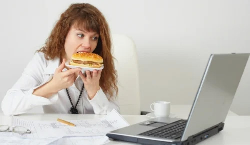 Dân văn phòng thường chạy đua với những deadline do tính chất công việc. Đôi khi buổi sáng quá giờ vì đêm trước làm việc muộn, bạn bỏ luôn bữa sáng-bữa ăn đặc biệt quan trọng trong ngày. Tới giờ cơm trưa, bạn ăn vội để tiếp tục công việc đang dang dở. Chính những điều này khiến dân văn phòng mắc phải những bệnh lý liên quan tới dạ dày và tiêu hóa. Ngoài ra, nếu ăn uống không đầy đủ, ăn quá vội, thiếu dinh dưỡng bạn sẽ chóng mặt, thiếu tỉnh táo, giảm sút hiệu quả trong làm việc.