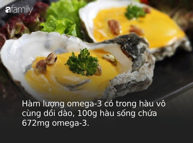 Đặc biệt, hàm lượng omega-3 có trong hàu vô cùng dồi dào, 100g hàu sống chứa 672mg omega-3.