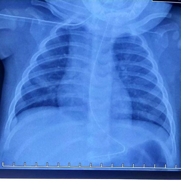 Tại đây, bé khó thở nhiều hơn nên chuyển đến bệnh viện An Giang. Bé được cho thở oxy, phun thuốc khí dung, đặt ống giúp thở rồi chuyển ngay lên BV Nhi Đồng Thành phố.