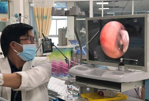 Trong khi nội soi, TS.BS Trịnh Hồng Nhiên, Trưởng khoa Hô hấp, Trưởng ekip Nội soi hô hấp đã phát hiện ra dị vật là đốt xương lươn nằm bít hoàn toàn phế quản trung gian bên phải, đốt xương nhiều gai sắc nhọn, rất khó gắp. Các bác sĩ phải thận trọng khi thao tác để hạn chế tổn thương niêm mạc đường thở của bé.
