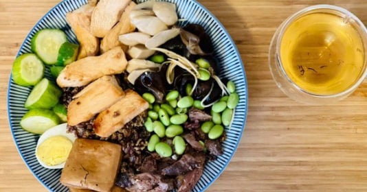 Bác sĩ Xiao Jiejian thường chọn ăn ức gà. Tuy nhiên vì thịt ức gà luộc chỉ cung cấp một nửa lượng protein mà cơ thể cần trong một bữa ăn, nên bác sĩ sẽ ăn thêm một hộp đậu phụ hoặc uống sữa đậu nành, hoặc một gói sữa đạm thực vật.