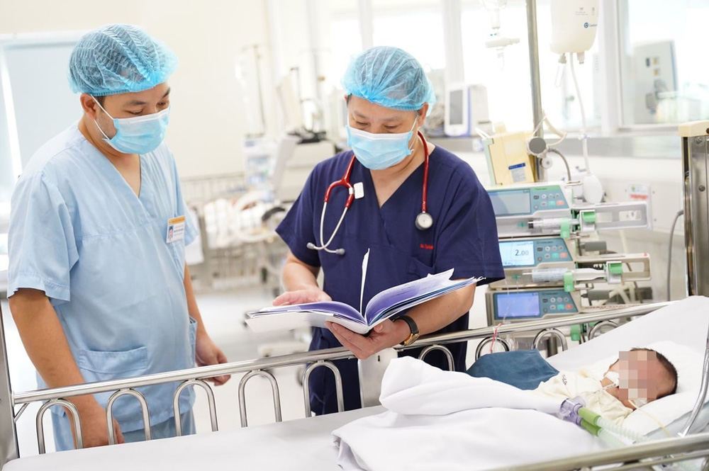 Sau khi, nhập viện trẻ được hỗ trợ thở máy và điều trị viêm phổi do virut RSV. Hiện trẻ vẫn phải thở máy, tiên lượng nặng, nguy cơ tử vong cao do trẻ nhập viện muộn, quá ‘thời điểm vàng’ để phẫu thuật.