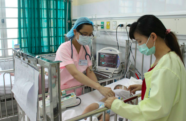 Nhiều trẻ cùng phòng điều trị với bé Khôi cũng vào viện sau khi sốt hơn 39-40 độ C, kết quả xét nghiệm cũng cho thấy các bé bị cúm A.
