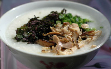 Cháo gà hành tía tô