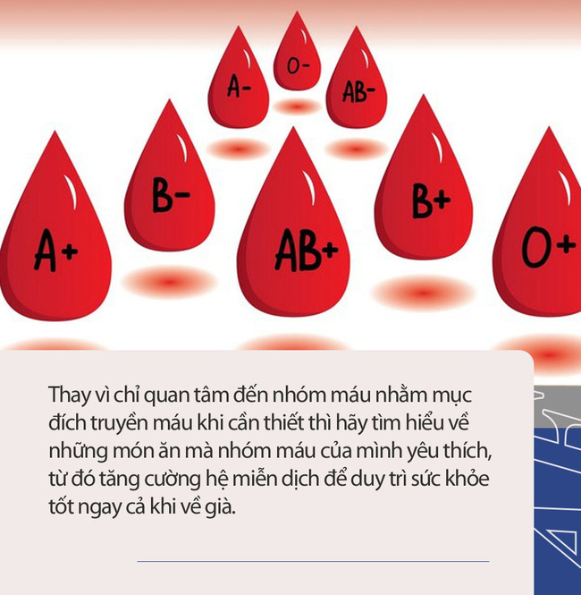 Trong cuốn sách của mình, tiến sĩ D'Adamo đã khuyên mọi người thay vì chỉ quan tâm đến nhóm máu nhằm mục đích truyền máu khi cần thiết, thì hãy tìm hiểu về những món ăn mà nhóm máu của mình yêu thích, từ đó tăng cường hệ miễn dịch để duy trì sức khỏe tốt ngay cả khi về già.