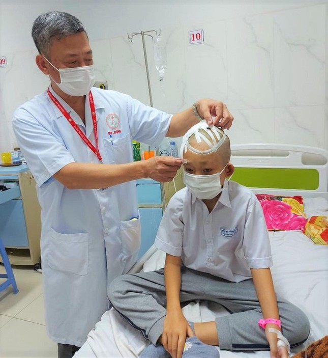 Theo bác sĩ Đồng, đây là lần đầu bệnh viện phẫu thuật u não cho bệnh nhân nhỏ tuổi. Khối u của cháu L. phát triển ở cả trong và độn ra ngoài da, nếu không được phẫu thuật sớm khối u sẽ ăn sâu vào xương, vào não gây hôn mê, liệt nửa người và khả năng phát triển thành ung thư. Do phát hiện kịp thời, mổ sớm nên nguy hiểm để lại cho bệnh nhân rất ít. Sau ca mổ, cháu L. tỉnh táo, ăn uống được, kết quả chụp CT kiểm tra ổn, đủ điều kiện để xuất viện.