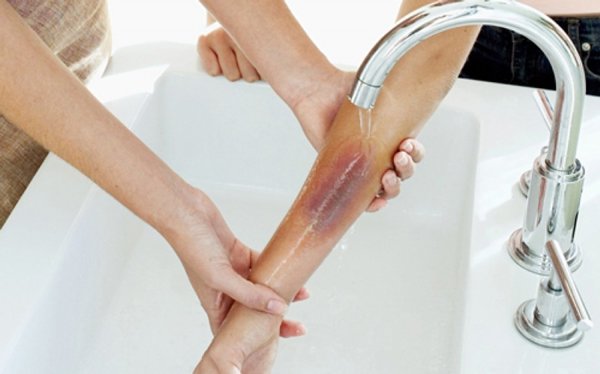 - Làm mát vết bỏng, tránh cho da khỏi bị rộp bằng cách mở vòi nước cho chảy chầm chậm lên vết bỏng khoảng 15 - 20 phút. Nước sạch vừa có tác dụng giảm nhiệt, giảm đau, giảm phù nề, viêm nhiễm, giảm độ sâu của vết thương.
