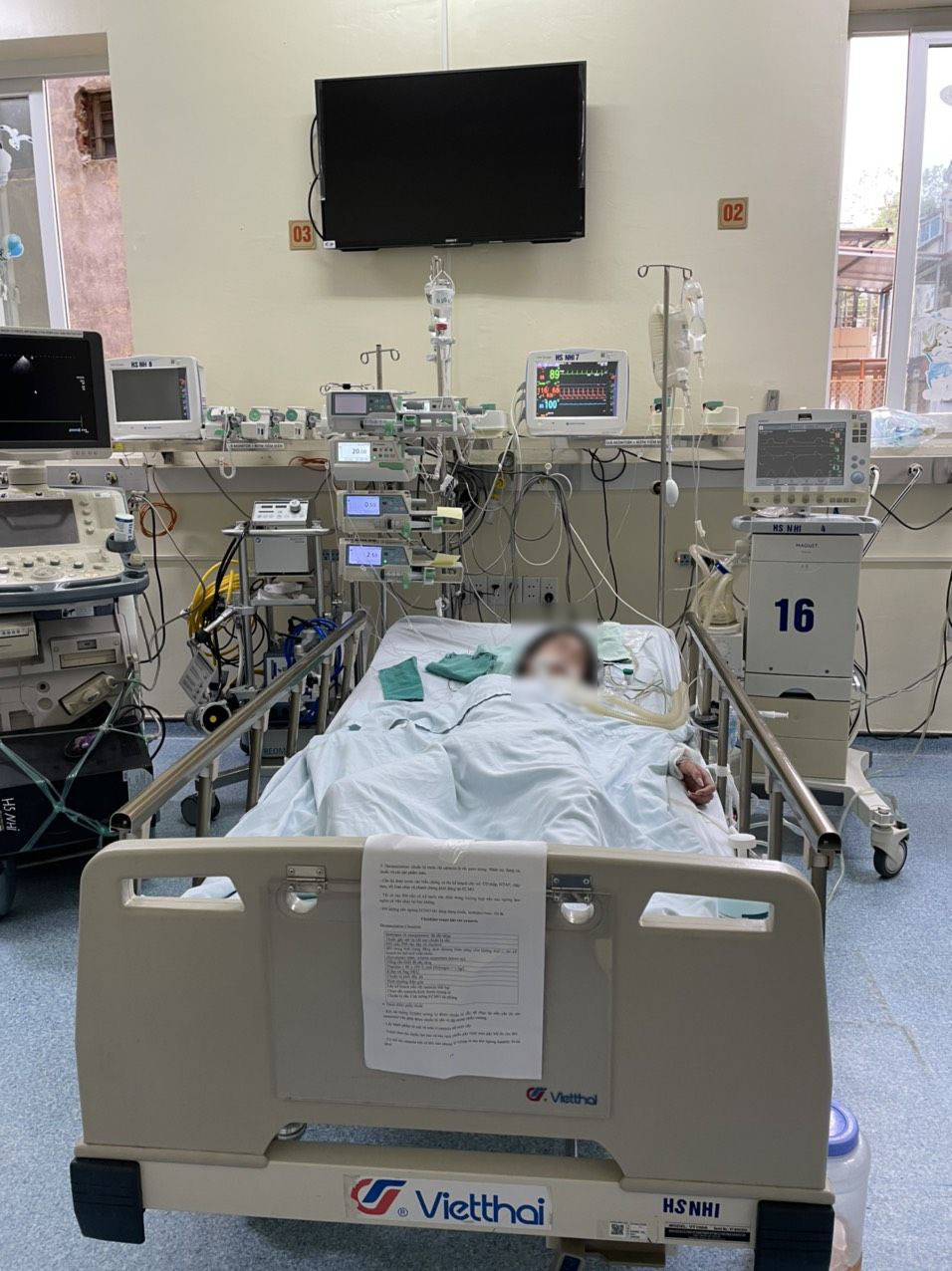 Tại khoa Cấp cứu, bệnh nhi được xử trí ban đầu rồi chuyển lên khoa Hồi sức nhi để đặt nội khí quản. Bệnh nhân được dùng thuốc vận mạch liều cao. Người nhà cho biết, tiền sử bé khỏe mạnh, không bệnh nền.