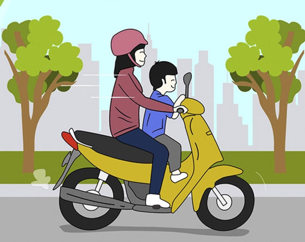- Tuyệt đối không cho trẻ ngồi trước người điều khiển xe máy.