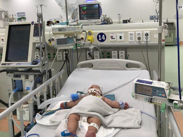 Trước đó, bệnh nhi bị sốt cao liên tục, không đáp ứng với thuốc hạ sốt nên nhập Bệnh viện Cần Giuộc. 2 ngày sau đó, bệnh nhi vẫn tiếp tục sốt cao, bú kém, không ho, không tiêu chảy.