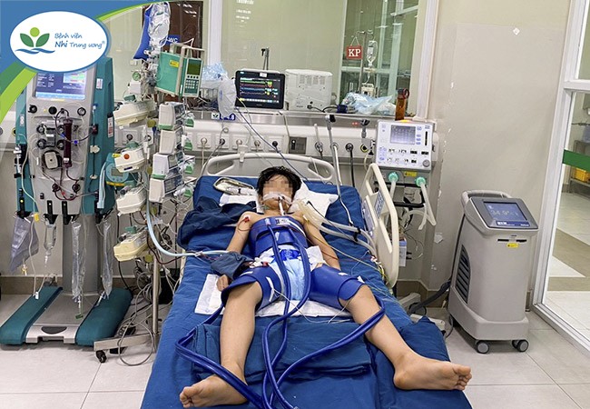 Bệnh nhi là P.T.M, 12 tuổi, ở Sơn Dương (Tuyên Quang). Cháu bé được chuyển đến Bệnh viện Nhi Trung ương cuối tháng 12-2022 với chẩn đoán suy đa tạng sau ngừng tuần hoàn, với thời gian cấp cứu khoảng gần 60 phút.