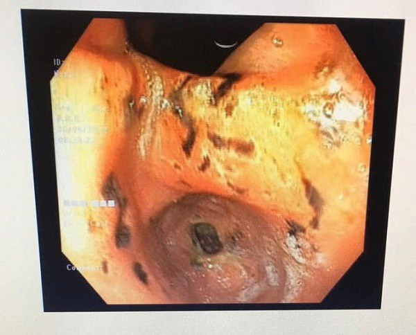 Kết quả cho thấy trẻ có tình trạng thiếu máu nặng do xuất huyết tiêu hoá do có nhiều ổ loét vùng tá tràng. Bệnh nhân được điều trị đặt sonde và bơm rửa dạ dày, cầm máu, truyền máu, sử dụng thuốc giảm tiết acid. Khi nhận kết quả, bố mẹ cháu bé vô cùng choáng váng vì trước đó trẻ chưa từng mắc bệnh hay biểu hiện bất bất thường gì.