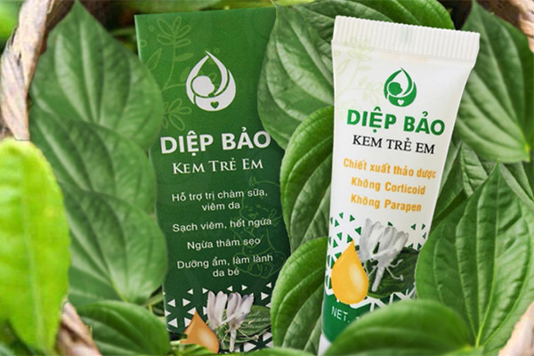 Tại thông báo trên trang chủ FDA, hình ảnh bao bì sản phẩm “Diệp Bảo - Kem trẻ em” có ghi "Hỗ trợ điều trị chàm sữa, viêm da cơ địa, hăm tã, mẩn ngứa, da khô nẻ, rôm sảy, côn trùng đốt... và một số bệnh ngoài da cho trẻ".