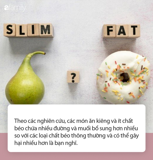 Chúng ta bị thu hút bởi các thực phẩm ăn kiêng có ít chất béo được quảng cáo trong các kệ hàng ở siêu thị. Theo các nghiên cứu, các món ăn kiêng và ít chất béo chứa nhiều đường và muối bổ sung hơn nhiều so với các loại chất béo thông thường và có thể gây hại nhiều hơn là bạn nghĩ.