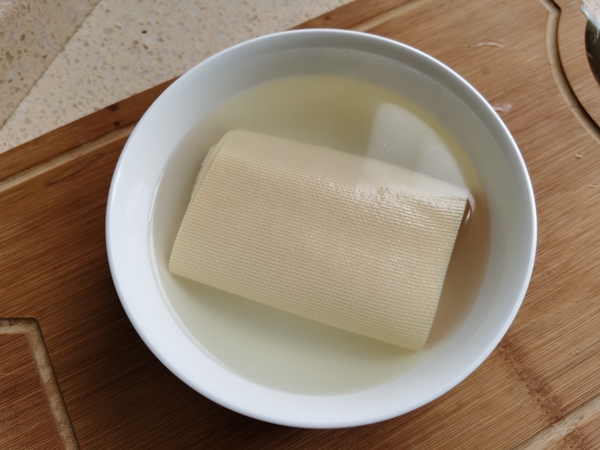 Hòa tan chút muối vào nước, cho váng đậu vào ngâm trong 30 phút.