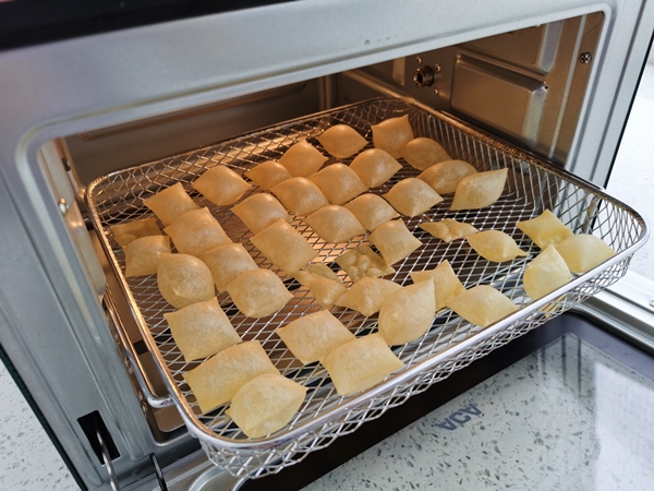 Lấy snack váng đậu ra, váng đậu sẽ phồng và giòn.