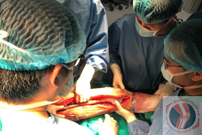 Trải qua đợt điều trị hóa chất tiền phẫu và ca đại phẫu kéo dài gần 3 tiếng đồng hồ, cuối cùng các bác sĩ đã lấy bỏ xương đùi bị bệnh cùng khối u khổng lồ có kích thước 28x10cm, nặng gần 3kg của bệnh nhân ra khỏi cơ thể. Đồng thời, thay thế thành công xương đùi nhân tạo kèm khớp háng và khớp gối nhân tạo.