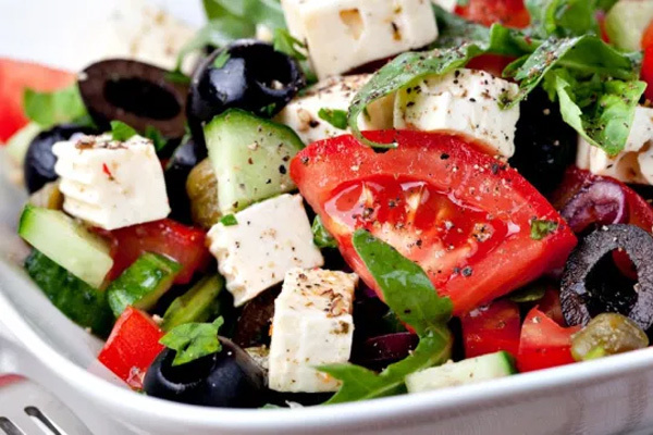 Bữa tối: Salad với cà chua, ô liu, phô mai