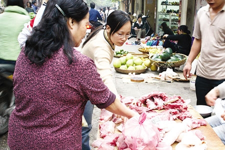 Thịt lợn là loại thực phẩm chính trong bữa ăn của nhiều gia đình. Ảnh: Chí Cường |