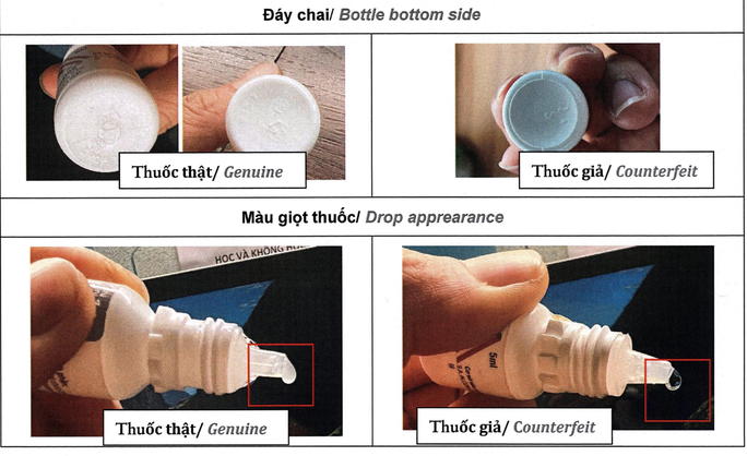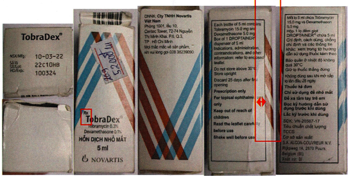 TobraDex là thuốc nhỏ mắt. Phông chữ thuốc giả khác với thuốc chính hãng, vỏ hộp thuốc giả không sử dụng hệ thống bảo vệ Norvatis (NSS), chiều cao lọ thuốc giả (55mm) thấp hơn so với sản phẩm chính hãng, đáy chai thuốc không giống với thiết kế của Norvatis; giọt thuốc giả có màu trong suốt như nước cất trong khi thuốc chính hãng màu trắng, trắng đục.