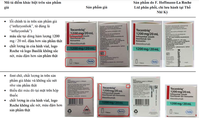 Ngoài ra, Cục Quản lý dược cũng cảnh báo đối với thuốc Tecentriq 1200mg/20ml (atezolizumab), số lô B0033B03, HSD: 2/9/24, code 10001437939658. Đây là kháng thể đơn dòng được chỉ định trong điều trị ung thư.