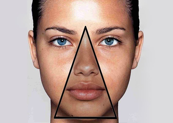 Trên khuôn mặt của bạn, đầu của hình tam giác nằm trên sống mũi và phần gốc của hình tam giác bắt đầu ở hai bên khóe miệng và kéo dài qua phần dưới của môi trên, theo Health.