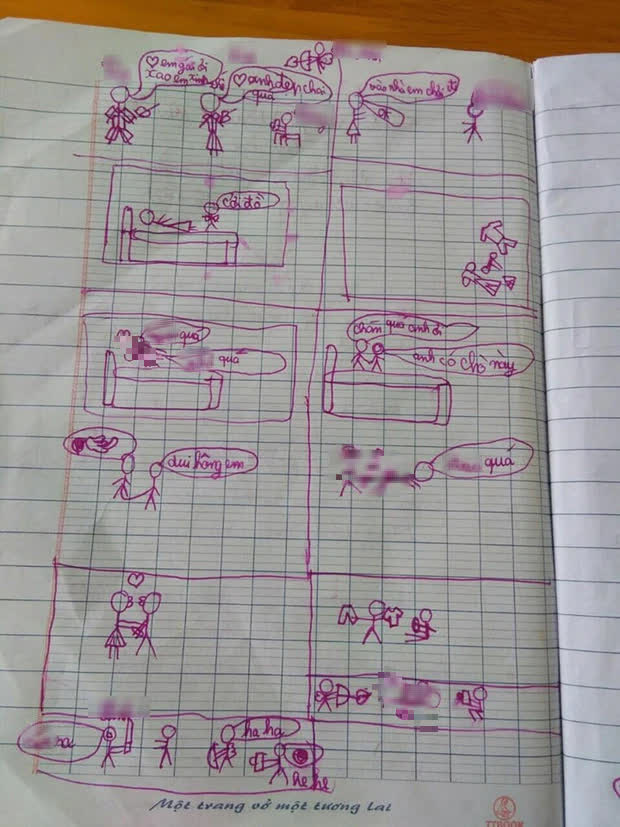 Mới đây, một hình ảnh được chia sẻ rần rần trên mạng xã hội. Một cậu bé 8 tuổi đã vẻ tường tận cảnh quan hệ tình dục lên trang giấy, từ cả giai đoạn làm quen cho đến khi có những hành động "nóng mặt".