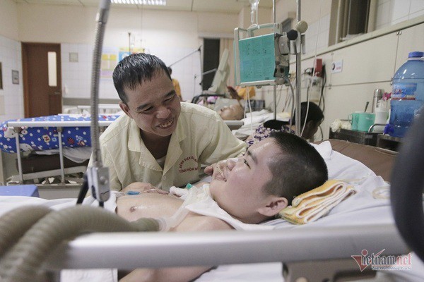 Ông Diệt nhìn về phía con trai đang nằm trên giường bệnh, ánh mắt đầy hy vọng.