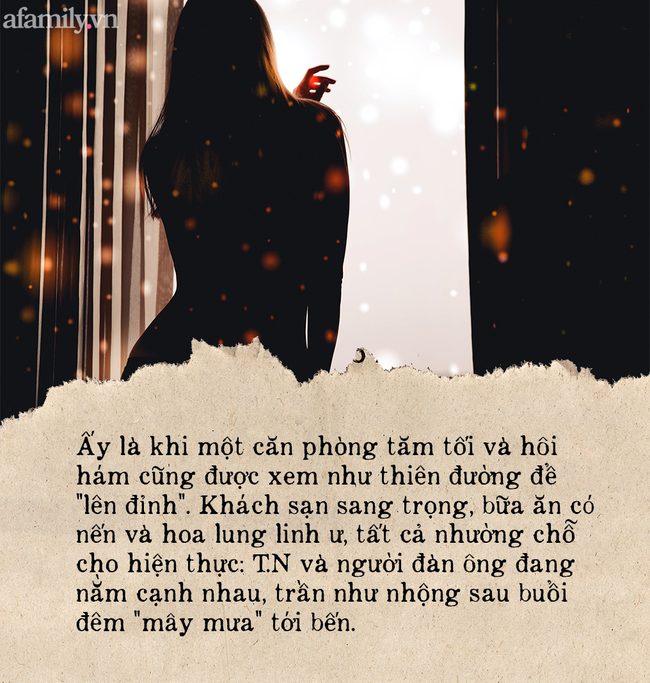 Sáng hôm sau, khi ánh bình minh chiếu rọi là lúc T.N tỉnh giấc. Cô bàng hoàng vì nhìn xung quanh căn phòng thực sự bừa bộn. Đồ đạc vứt lung tung, "bãi chiến tích" còn sót... ôi bao nhiêu thứ ngổn ngang đến phát bực. Vậy mà đêm qua khi về đây T.N không nhận ra, mà cũng khó để nhận ra nổi. Bởi dục vọng có thể che mờ mắt con người. Ấy là khi một căn phòng tăm tối và hôi hám cũng được xem như thiên đường để "lên đỉnh". Khách sạn sang trọng, bữa ăn có nến và hoa lung linh ư, tất cả nhường chỗ cho hiện thực: T.N và người đàn ông đang nằm cạnh nhau, trần như nhộng sau buổi đêm "mây mưa" tới bến.