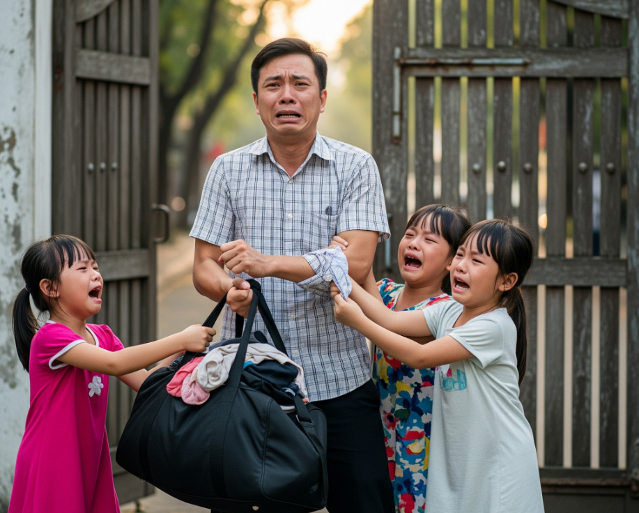 Vợ tôi lặng lẽ quay đi. Mấy đứa con gái rúc vào lòng mẹ, chẳng ai thèm nhìn tôi thêm lần nữa.
