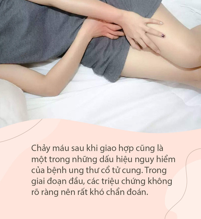 Đặc biệt, chảy máu sau khi giao hợp cũng là một trong những dấu hiệu nguy hiểm của bệnh ung thư cổ tử cung. Trong giai đoạn đầu, các triệu chứng không rõ ràng nên rất khó chẩn đoán.