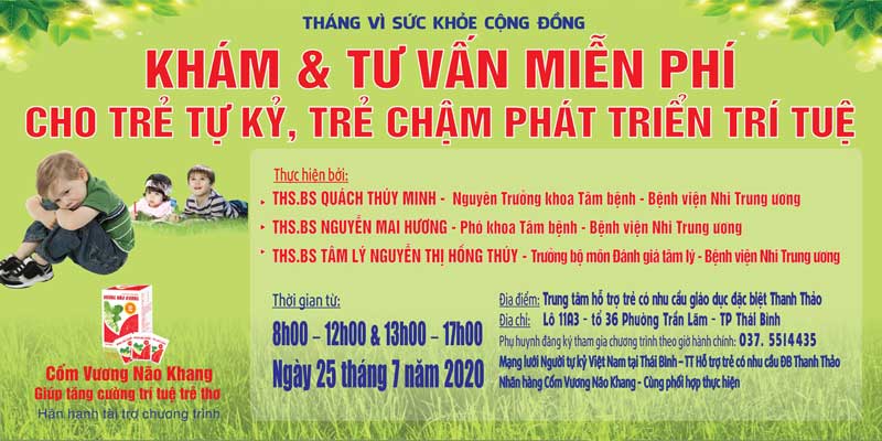 Thấu hiểu và đồng cảm với những khó khăn của các cha mẹ có con tự kỷ, chậm phát triển trí tuệ, nhãn hàng Vương Não Khang - Tăng cường trí tuệ trẻ thơ đã phối hợp cùng các bác sĩ Bệnh viện Nhi Trung ương và mạng lưới người tự kỷ Việt Nam tại Thái Bình cùng Trung tâm Hỗ trợ trẻ có nhu cầu đặc biệt Thanh Thảo tổ chức chương trình khám và tư vấn miễn phí cho những trường hợp trên.