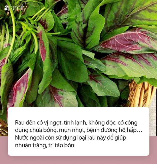 "Trong Đông y, rau dền có vị ngọt, tính lạnh, không độc, có công dụng chữa bỏng, mụn nhọt, bệnh đường hô hấp… Nước ngoài còn sử dụng loại rau này để giúp nhuận tràng, trị táo bón", lương y Bùi Hồng Minh khẳng định. Đây là loại rau có công dụng giải nhiệt rất tốt. Vào thời tiết này, bạn có thể ăn canh rau dền hoặc rau dền luộc hàng ngày đều phát huy rất tốt công dụng này.