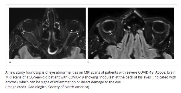 Chuyên gia Augustin Lecler, phó giáo sư tại Đại học Paris, Pháp cho biết, nghiên cứu bao gồm 129 bệnh nhân Covid-19 nhập viện cho thấy thông qua thông tin chụp cộng hưởng từ não, trong đó 9 người (7%) có nốt sần ở mắt, và 8 người có nốt sần ở cả hai mắt.