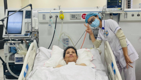 Sau hơn 2 tháng nằm viện, người phụ nữ này đã được cai máy thở, rút ống mở khí quản, tỉnh táo hoàn toàn, có thể nói chuyện bình thường. Bệnh nhân đang tập đi đứng trở lại và đã được xuất viện.