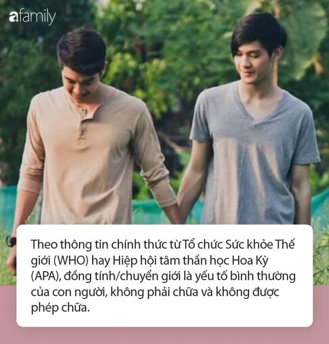 Theo thông tin chính thức từ Tổ chức Sức khỏe Thế giới (WHO) hay Hiệp hội tâm thần học Hoa Kỳ (APA), đồng tính/chuyển giới là yếu tố bình thường của con người, không phải chữa và không được phép chữa.