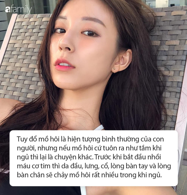 Tuy đổ mồ hôi là hiện tượng bình thường của con người, nhưng nếu mồ hôi cứ tuôn ra như tắm khi ngủ thì lại là chuyện khác. Trước khi bắt đầu nhồi máu cơ tim thì da đầu, lưng, cổ, lòng bàn tay và lòng bàn chân sẽ chảy mồ hôi rất nhiều trong khi ngủ.