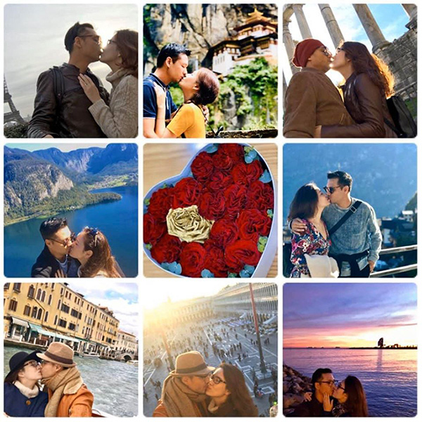 Cách đây chín năm, Khải Anh và Đan Lê tổ chức lễ gia tiên vào đúng ngày Valentine. Hạnh phúc khi nhìn lại những gì đã trải qua, nữ MC kiêm diễn viên dành cho chồng những lời cảm ơn đầy ngọt ngào: "Kỷ niệm 9 năm ngày cưới và cũng là rất rất nhiều mùa Valentine bên nhau. Cảm ơn anh vì đã ở cạnh em, đã luôn chịu lắng nghe mỗi khi em khó ở, đã không quên hôn em mỗi sáng và nhắn tin cho em mỗi ngày. Cảm ơn anh đã cùng em đi khắp mọi nơi ta mơ ước, dẫu sướng vui hay đau khổ cũng không từ bỏ. Chẳng mong gì nhiều, chỉ mong đôi ta yêu nhau bình yên như thế thôi". Cùng với những lời yêu thương, Đan Lê chia sẻ khoảnh khắc hai vợ chồng hôn nhau ở nhiều địa điểm nổi tiếng trên khắp thế giới như Bhutan, Pháp, Italy...