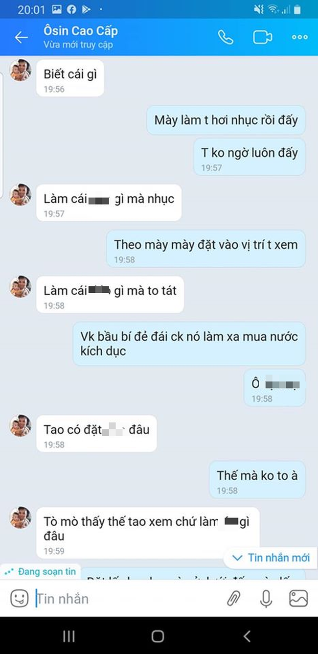 "Em điên quá các mẹ ạ, em đang tính nói ông bà xong bế con đi về bà ngoại 1 thời gian". Theo như những đoạn chat mà cô vợ đăng lên, anh chồng hiện đang làm việc xa nhà, vợ thì bầu bí nhưng không hiểu vì lý do gì mà cô ấy biết được anh có ý định mua "nước hoa vùng kín".