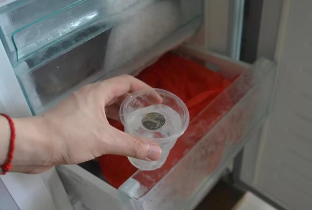 Cách thực hiện rất đơn giản: Bạn chỉ cần lấy một chiếc cốc hoặc bát nhỏ, đổ đầy nước và đặt vào ngăn đá để nước đông cứng hoàn toàn. Sau đó, đặt một đồng xu lên trên bề mặt lớp đá và để nguyên cốc nước đó ở một vị trí dễ thấy trong ngăn đông.