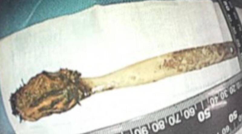 Kiểm tra kỹ hơn các bác sĩ xác nhận vật thể đó là bàn chải đánh răng bằng nhựa dành cho trẻ em.
