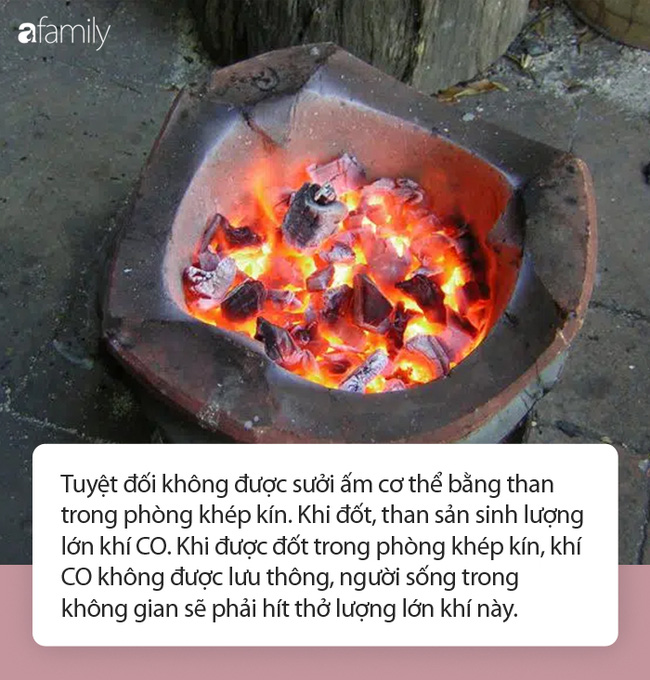 Theo PGS.TS Trần Hồng Côn (Giảng viên khoa Hóa, Đại học Khoa học Tự nhiên, ĐHQGHN), tuyệt đối không được sưởi ấm cơ thể bằng than trong phòng khép kín. Nguyên nhân bởi, khi đốt, than sản sinh lượng lớn khí CO. Khi được đốt trong phòng khép kín, khí CO không được lưu thông, người sống trong không gian sẽ phải hít thở lượng lớn khí này. Ngạt khí CO trong quá trình đốt bếp than diễn ra rất từ từ, nạn nhân thường chìm vào giấc ngủ mà không biết là mình rơi vào tình trạng nguy hiểm, có thể mất mạng ngay sau đó.