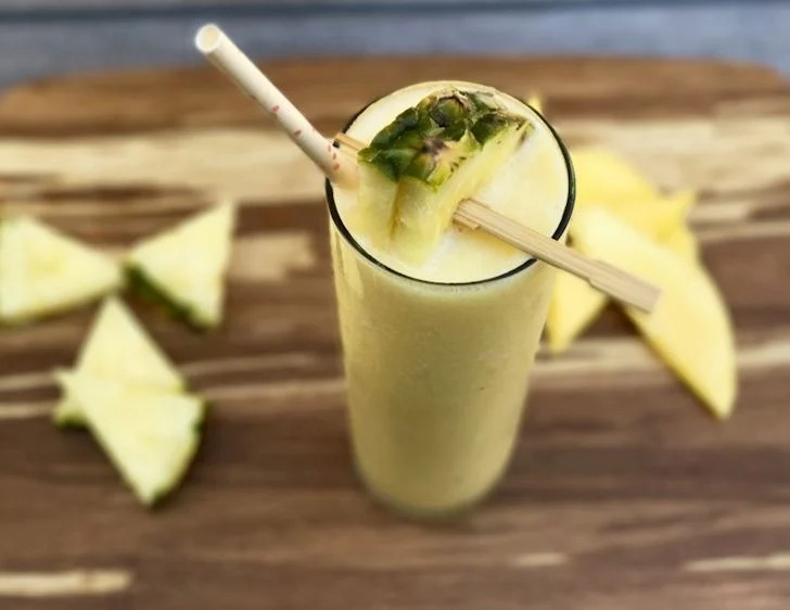 Gợi ý cho bạn món sinh tố không béo. Hãy xay nhuyễn 240 ml sữa tách béo với 100g dứa đông lạnh để có món sinh tố nhiệt đới chỉ có khoảng 160 calo.