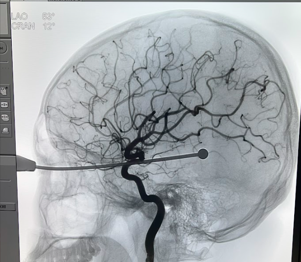 Người bệnh được chuyển từ khu vực hồi sức cấp cứu xuống phòng can thiệp mạch máu, gây mê nội khí quản, đặt ống thông từ động mạch đùi lên phía các động mạch não, kiểm soát các mạch máu nằm trên đường đi của dị vật.