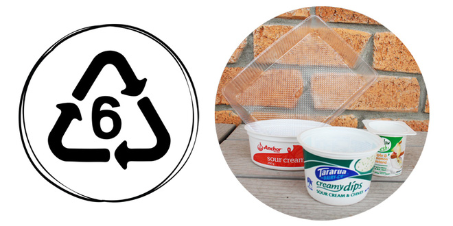 Nhãn tái chế số 6 được in hoặc dập nổi trên các sản phẩm làm từ nhựa PS (Polystyrene). Đây là một loại nhựa xốp rẻ tiền, thường được sử dụng ở các nước đang phát triển. Nhiều sản phẩm như hộp đựng thực phẩm, dao, dĩa, thìa nhựa dùng một lần là thứ mà bạn sẽ gặp được làm từ nhựa PS nhãn số 6.